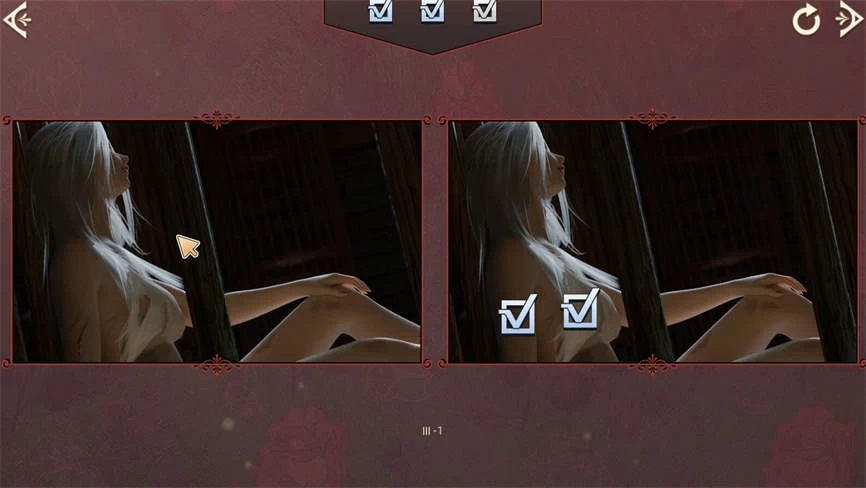 每个关卡有3处不同,当成功圈中所有不同之处便会解锁下一关,解锁全部关卡后即可获得整张精美CG,逐步探索整个游戏的真实故事。