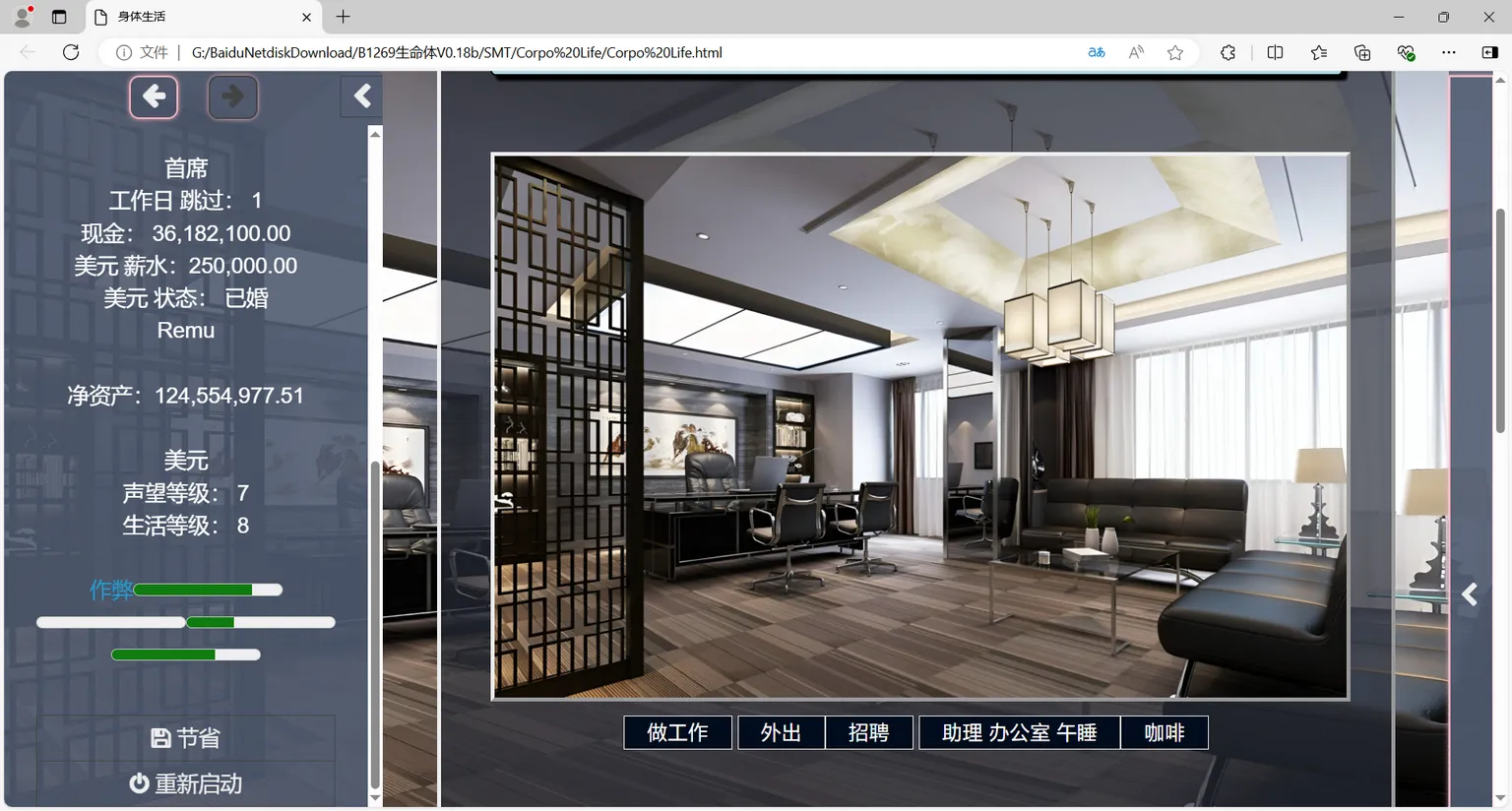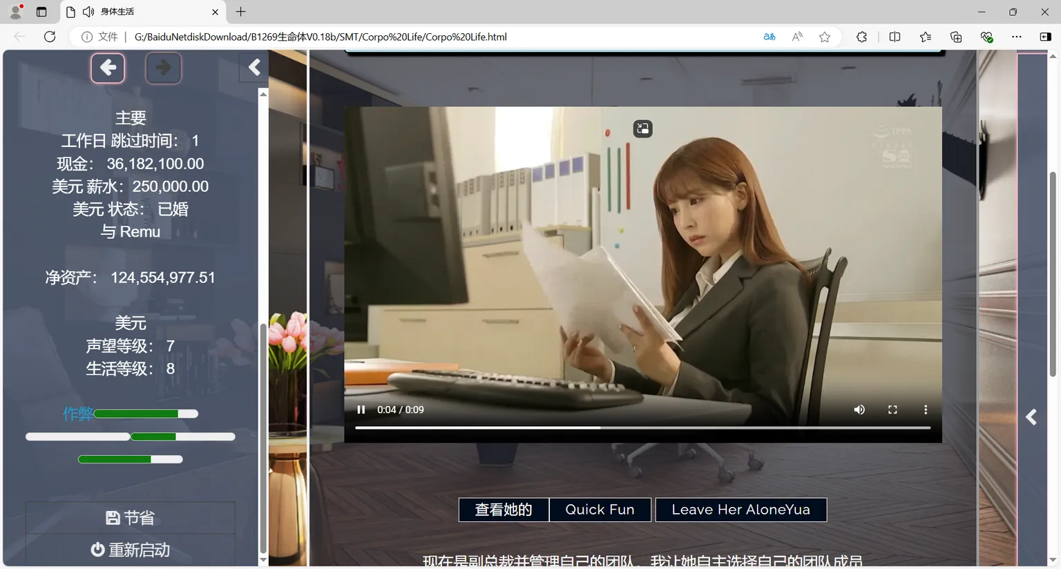 扮演华尔街一家大型银行新聘用的应届毕业生。攀登企业阶梯,成为银行中最有权势的人,并最终成为整个金融行业最有权势的人。结识漂亮的同事和企业无人机伙伴。与他们互动、交朋友和约会。如果幸运的话,您将能够结识名人、约会或与他们发生性关系。大多数扭结是亚洲女孩、办公室爱爱、JAV 和漂亮的脸蛋。